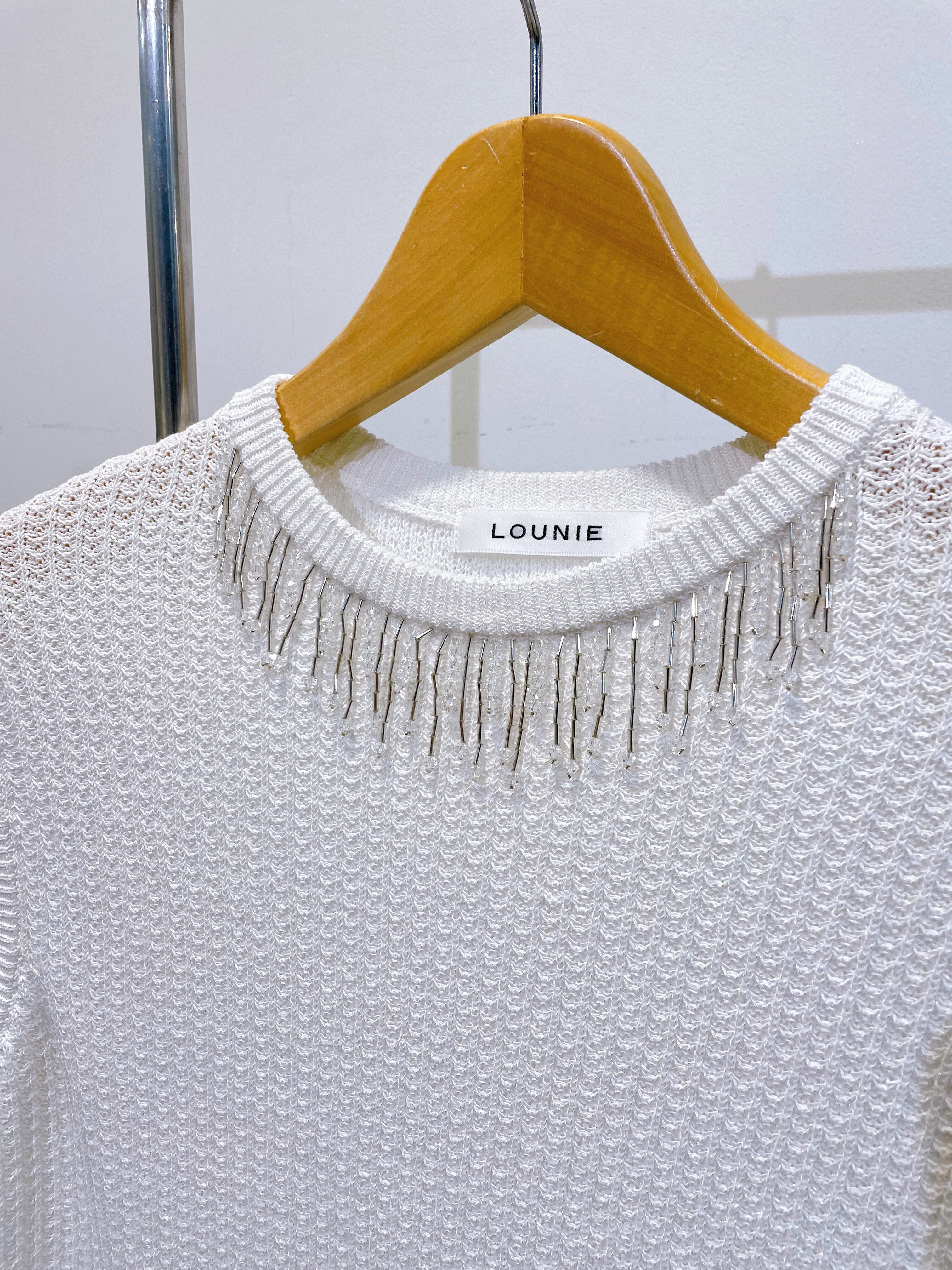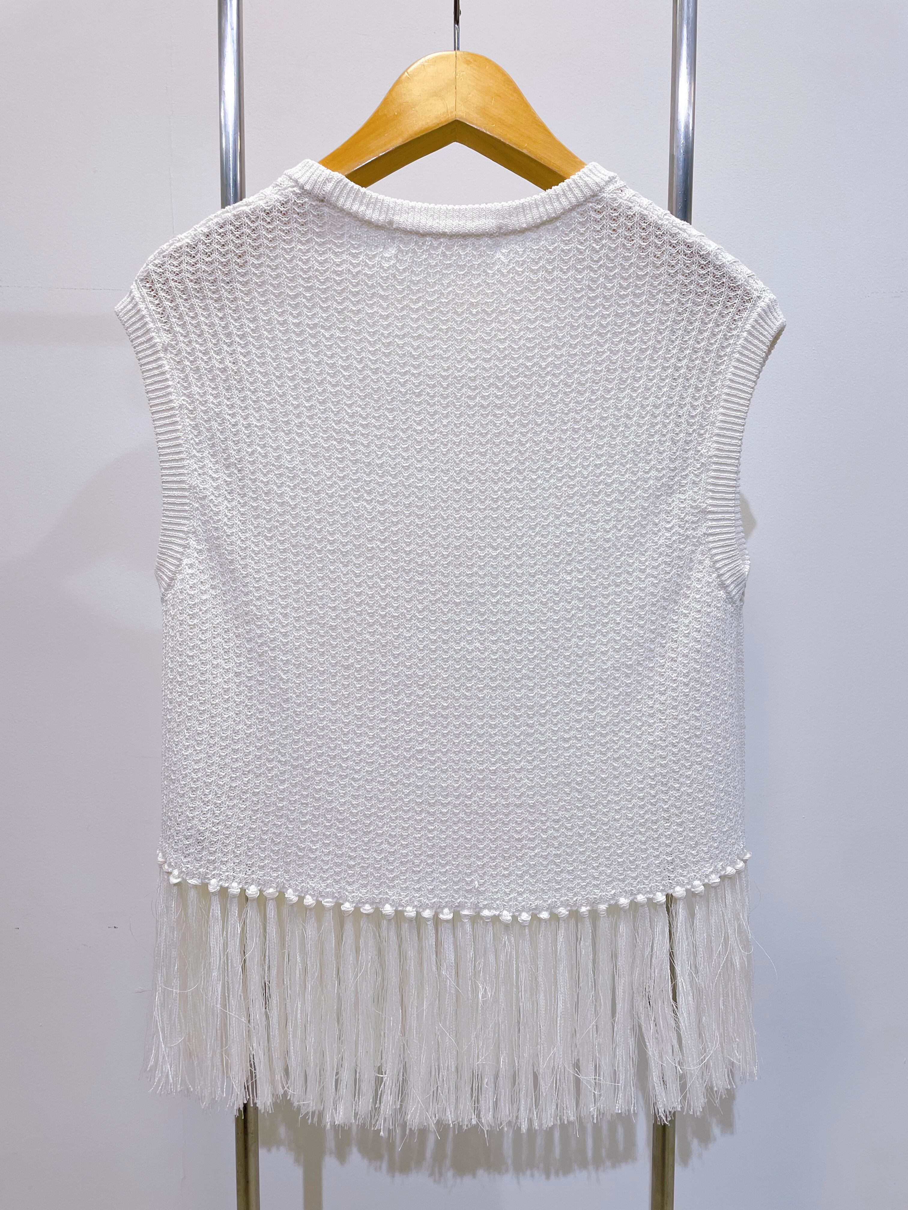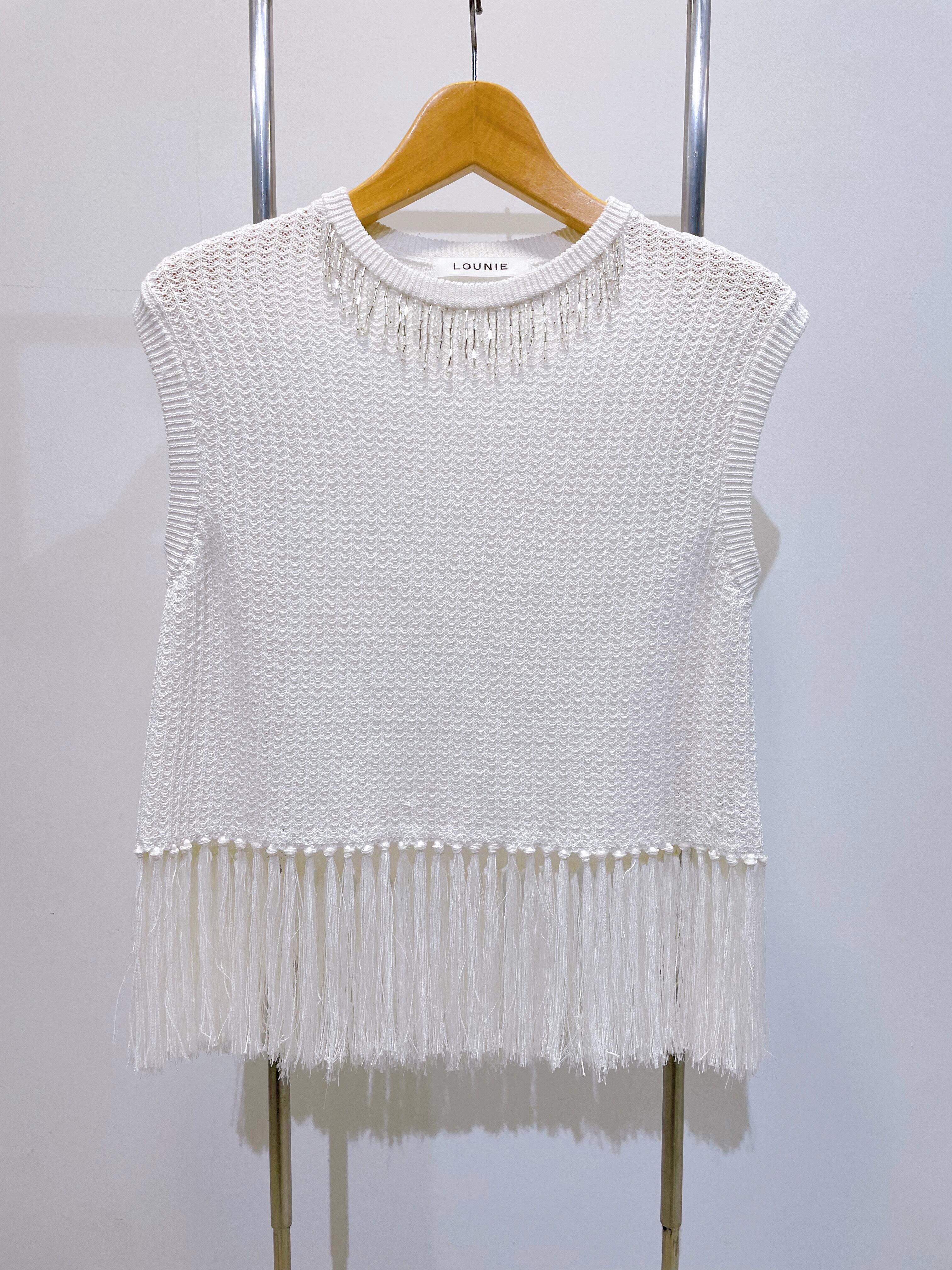 ・トレンドのフリンジデザインが今年らしい、鮮度のあるニットプルオーバー。