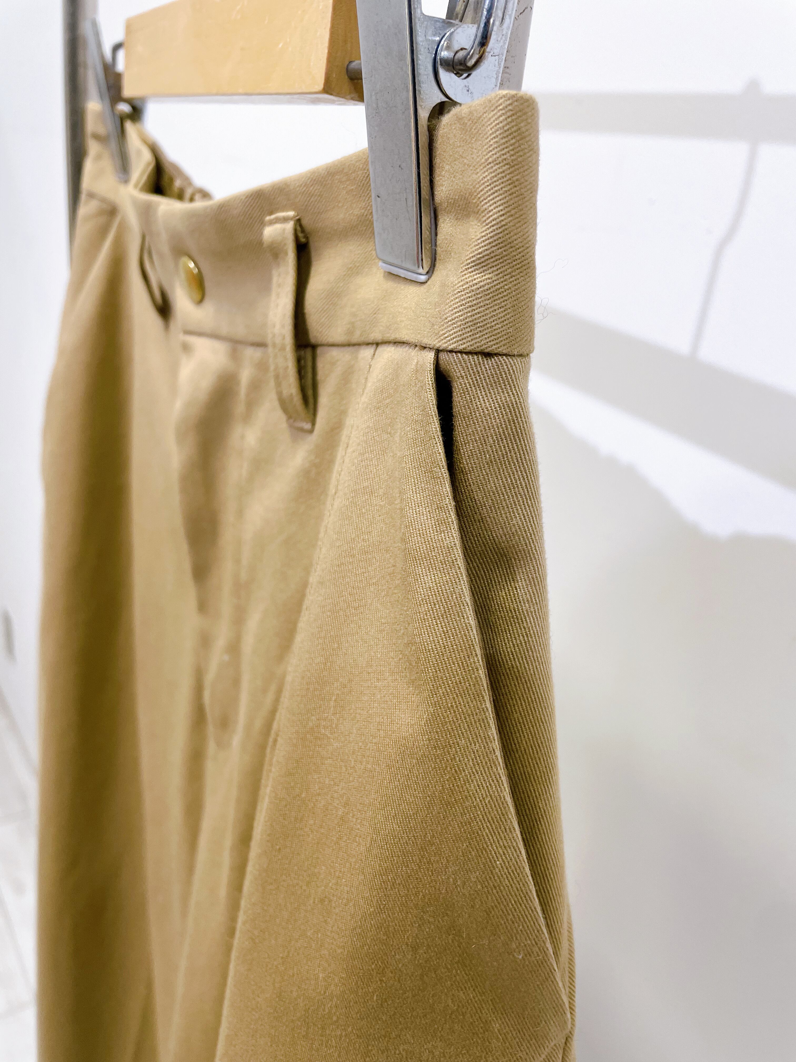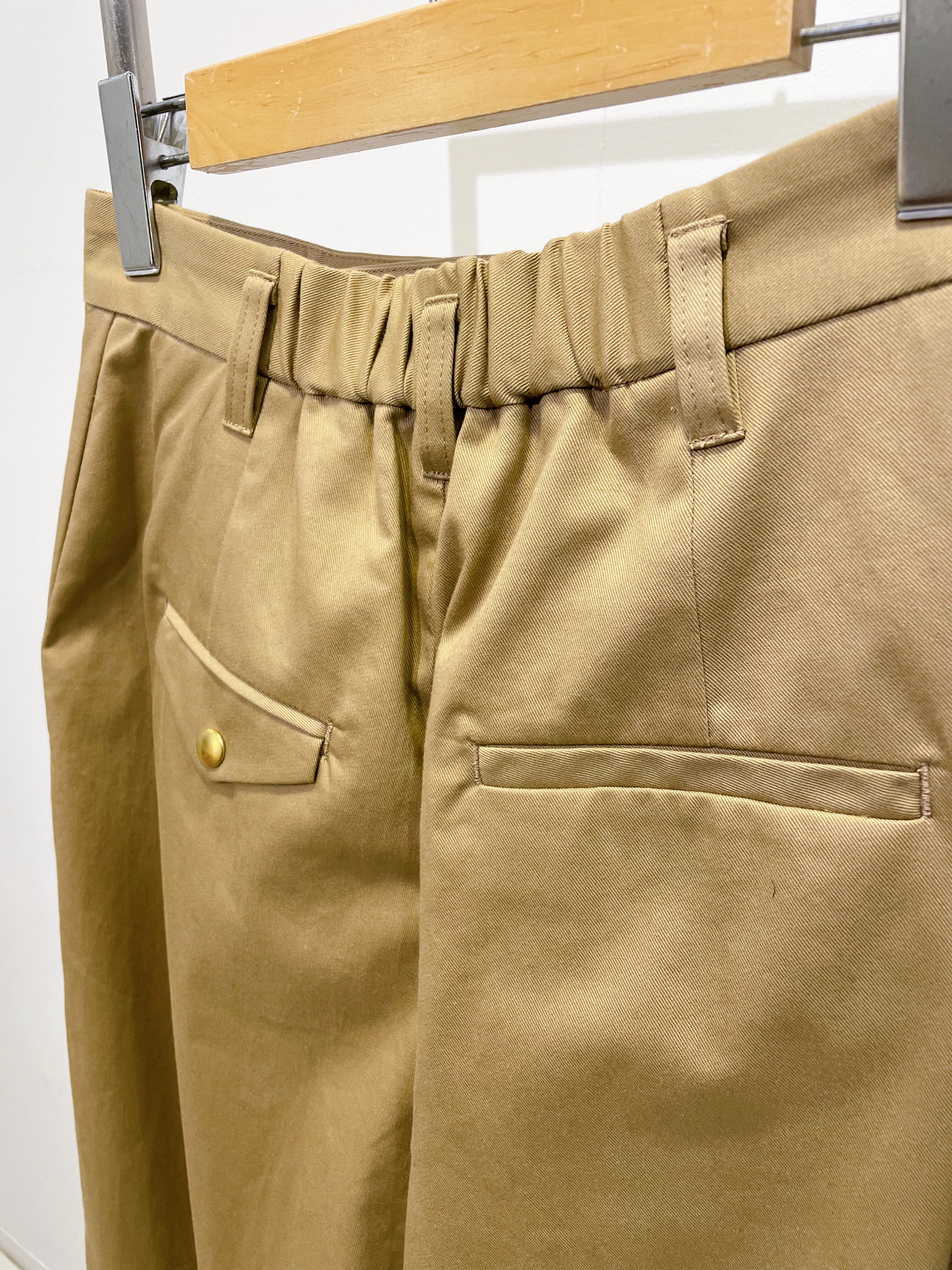 ≪チノストレッチ≫ オフには、ポリエステルとコットンの交織により、上品な光沢感とナチュラルな風合いを併せ持ったキレイ目カジュアルな素材感が特徴 ベージュ・ブラックには、タテ糸にコンパクトヤーンを使用して織り上げる事により、毛羽立ちが少なくカジュアル過ぎないナチュラルな表情が特徴。