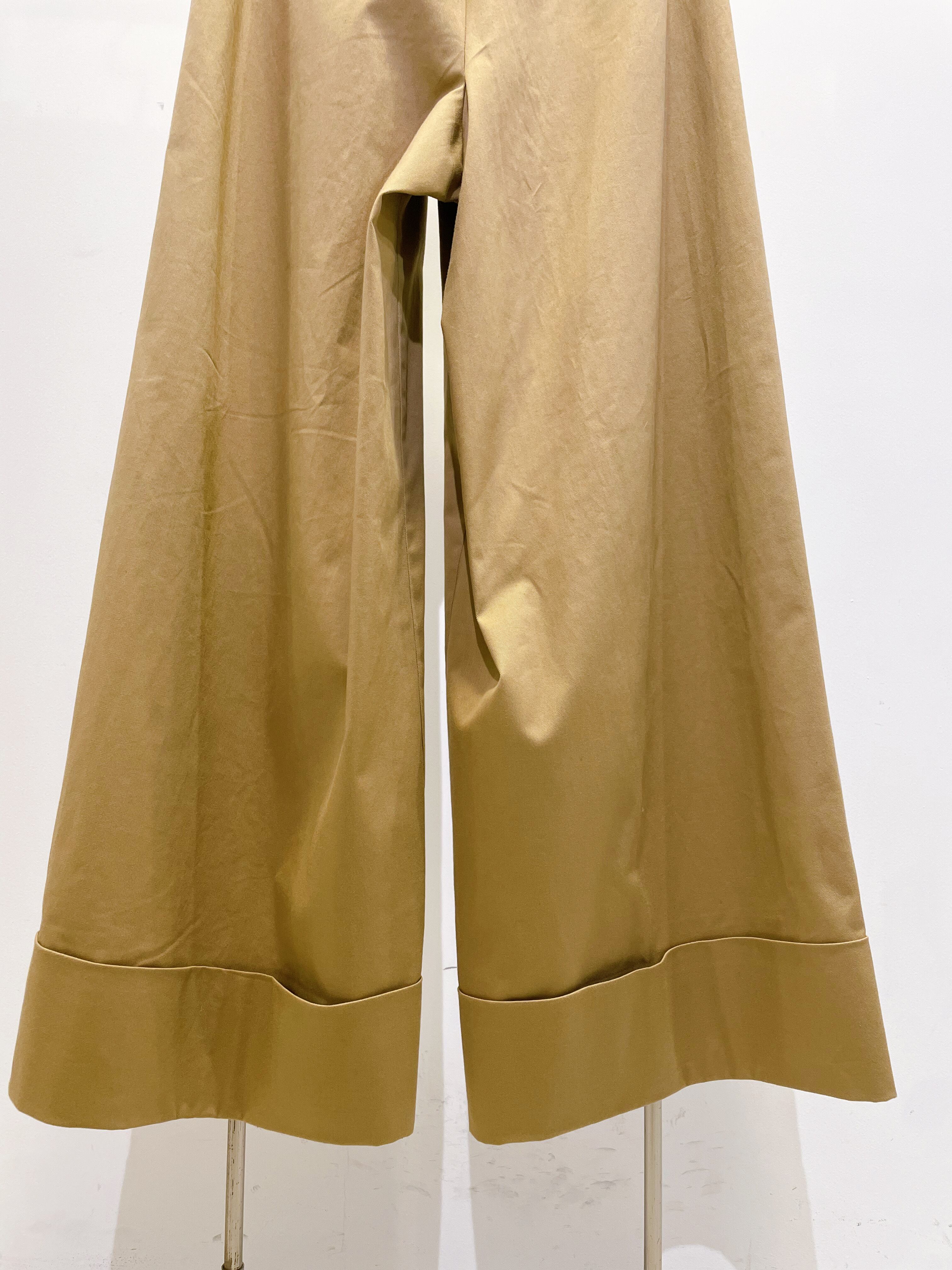 ・裾のターンバックデザインがマニッシュな印象のワイドパンツ。