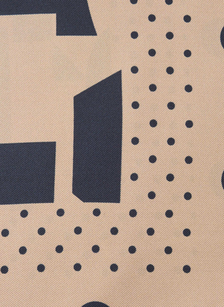 幾何学&ドットプリントスカート・幾何学&ドットプリントワンピースで展開されているポルカドット、小粒ドット、幾何柄を1つのプリント柄としてまとめ、シルクスカーフに落とし込んだオリジナリティのあるデザインです。