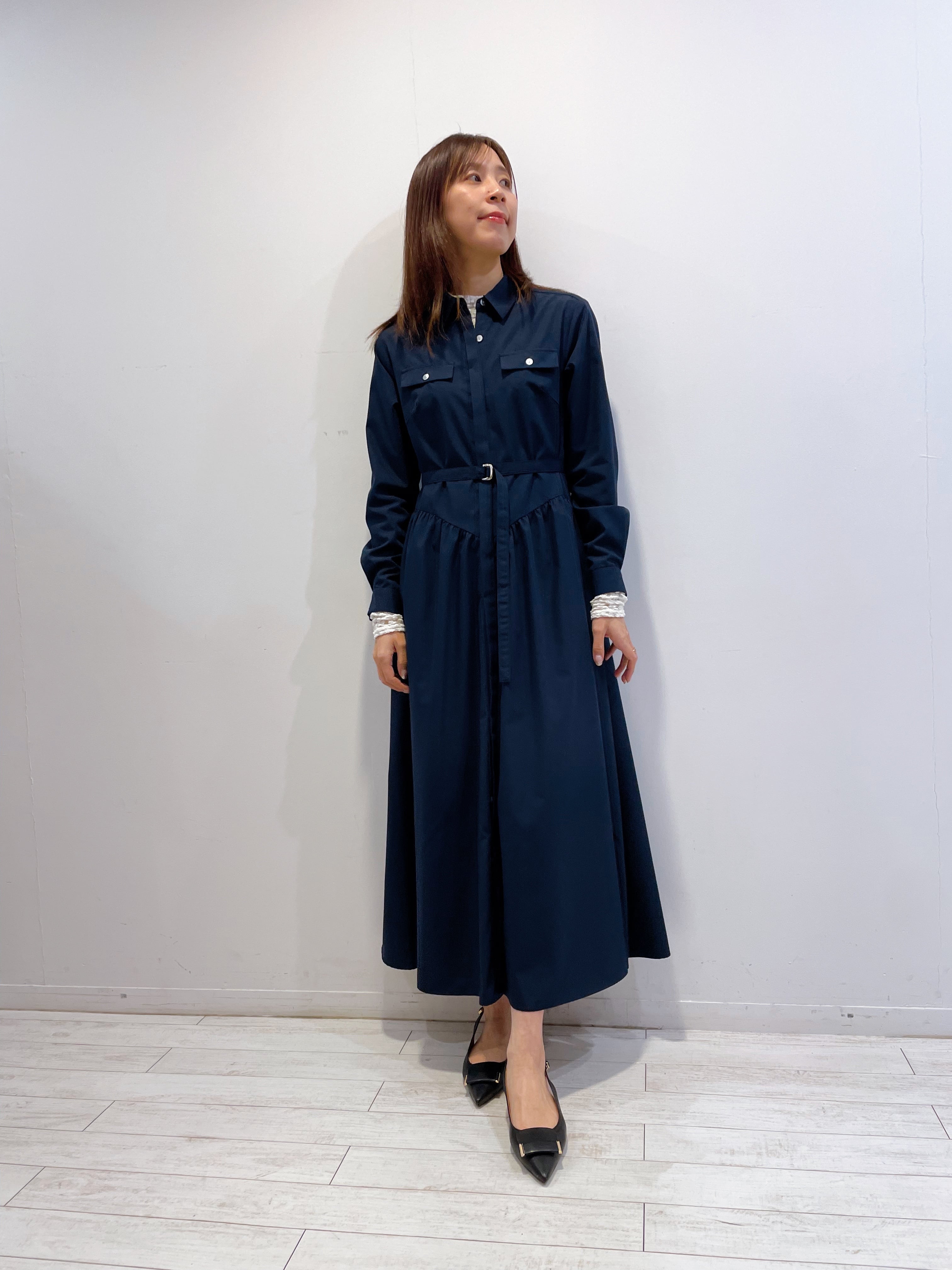 ・細めのベルト付きでウエストマークすることで、スタイルアップ効果抜群です。