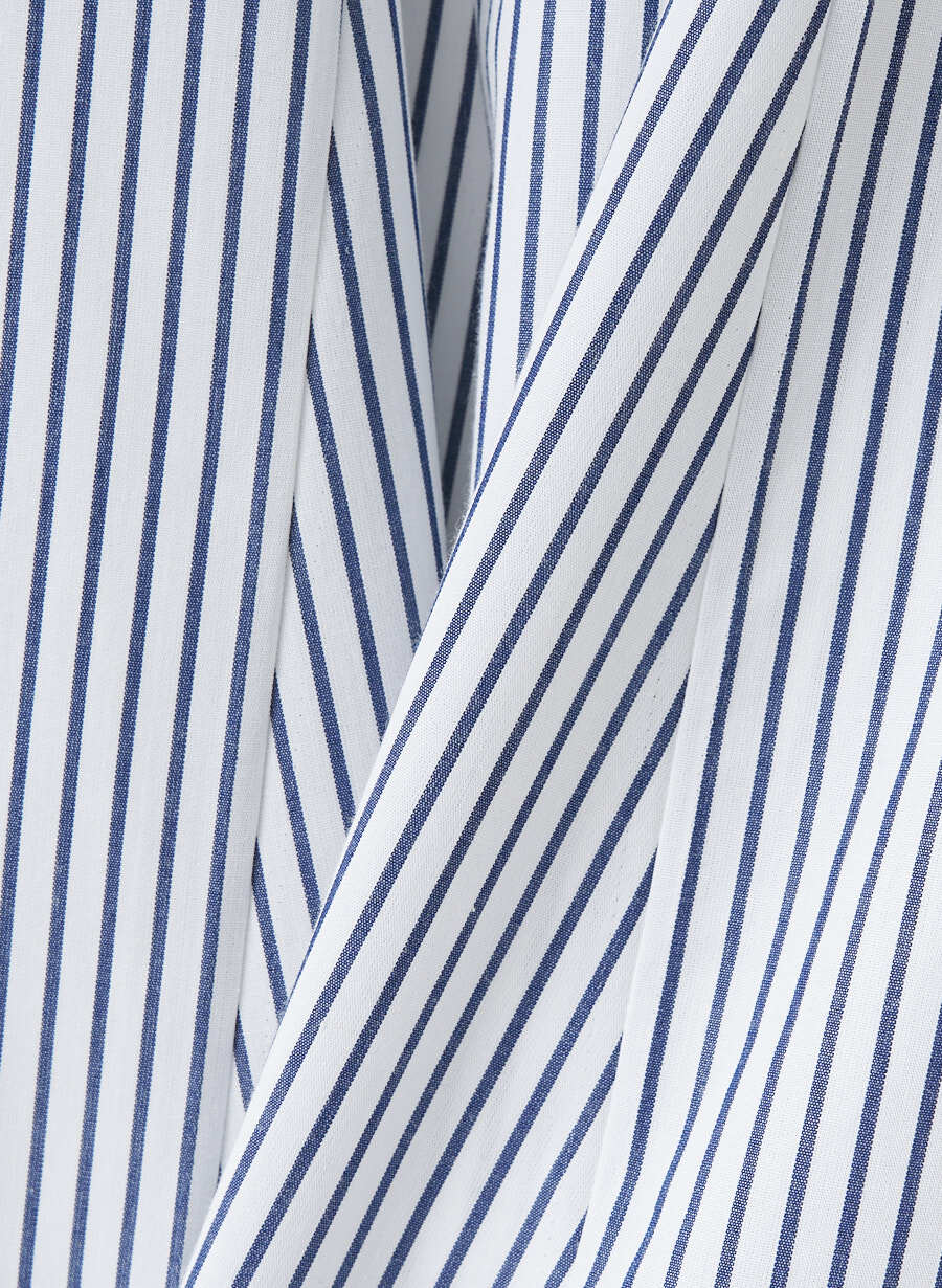 コットンとポリエステルを交織する事による、ナチュラルな表情としなやかな風合い、シワになりにくい素材感が特徴。