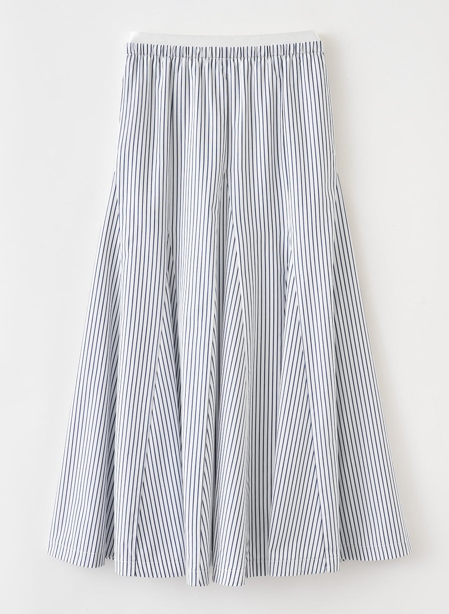 ・ クリーンな印象のストライプ柄で、たっぷりボリューム、上品で華やかなフレアスカートです。