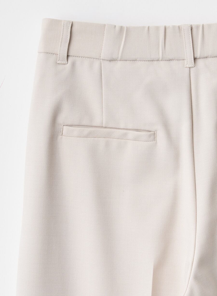 ・ シンプルな形で通勤などデイリーにも着まわせるワイドパンツ。