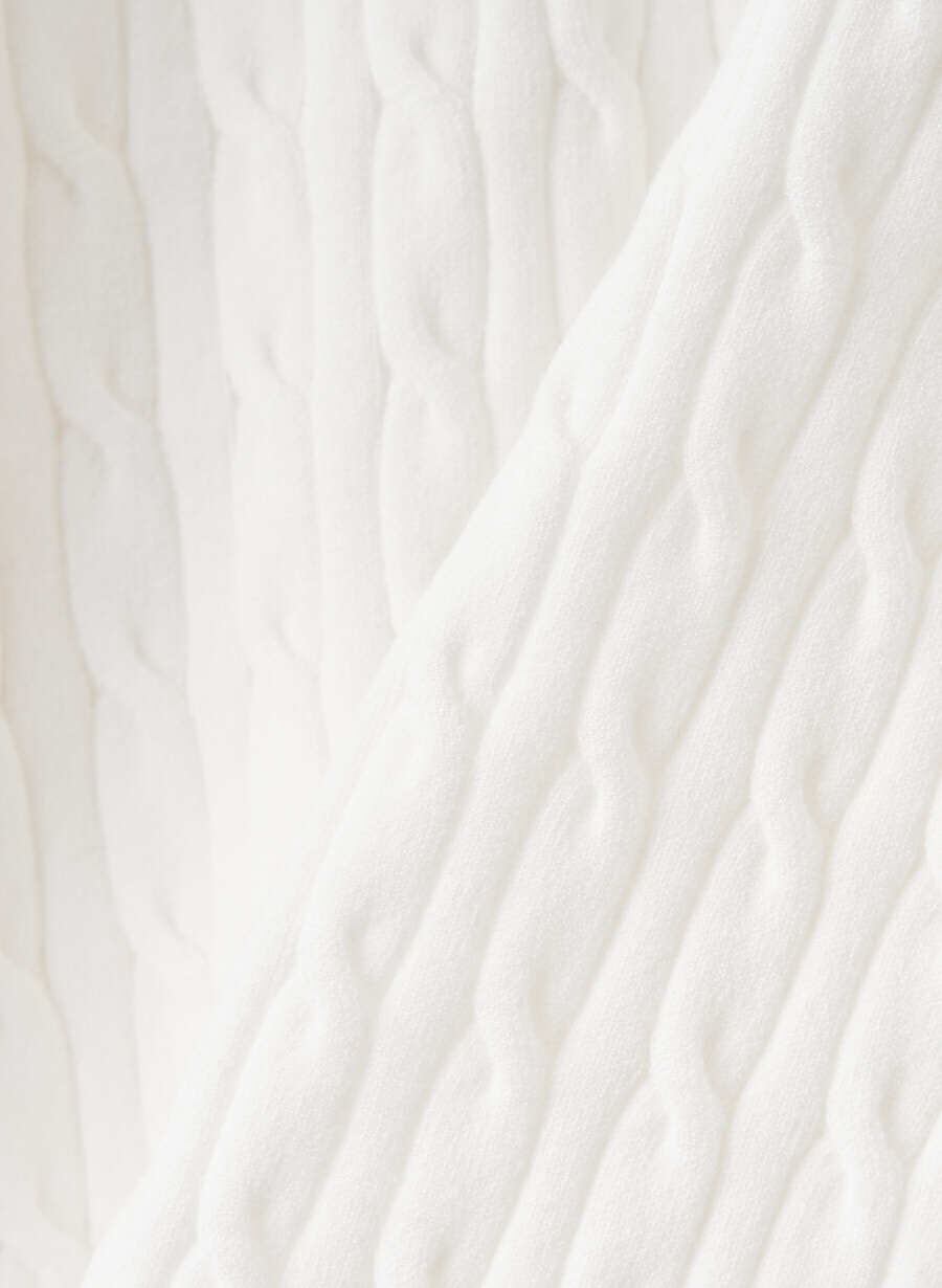 ・超細番手の柔らかく風合いの良い糸を使用し、程良いストレッチ性があるハイゲージケーブル柄に編み立てています。