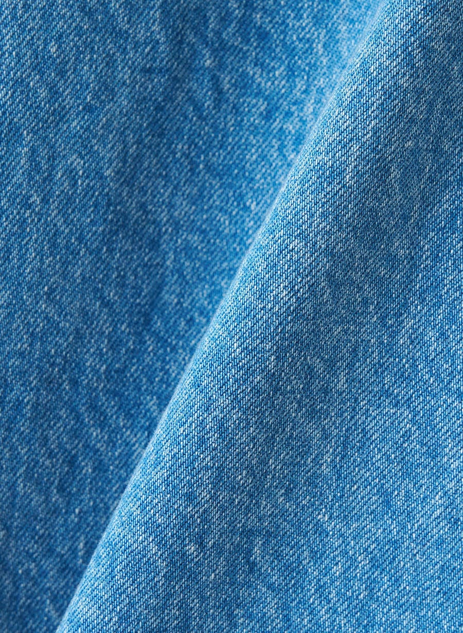 ≪コットンデニム 製品洗い≫ リング糸を使用して織り上げる事による、ヴィンテージ感のあるアタリ・ムラの色落ちが特徴のデニムを使用。