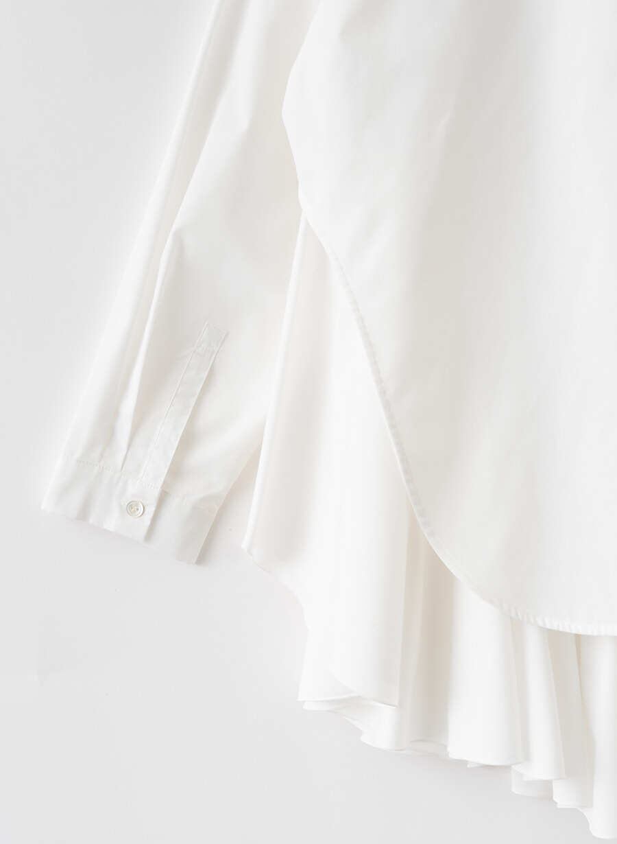 ・ すっきりとしたシャツをベースに、裾には大胆で大きめのラッフルを贅沢に施したデザインチュニック ・チュールの裏地にラッフルをハギ合わせることでより優しい立体的なラッフルに仕上がっています。
