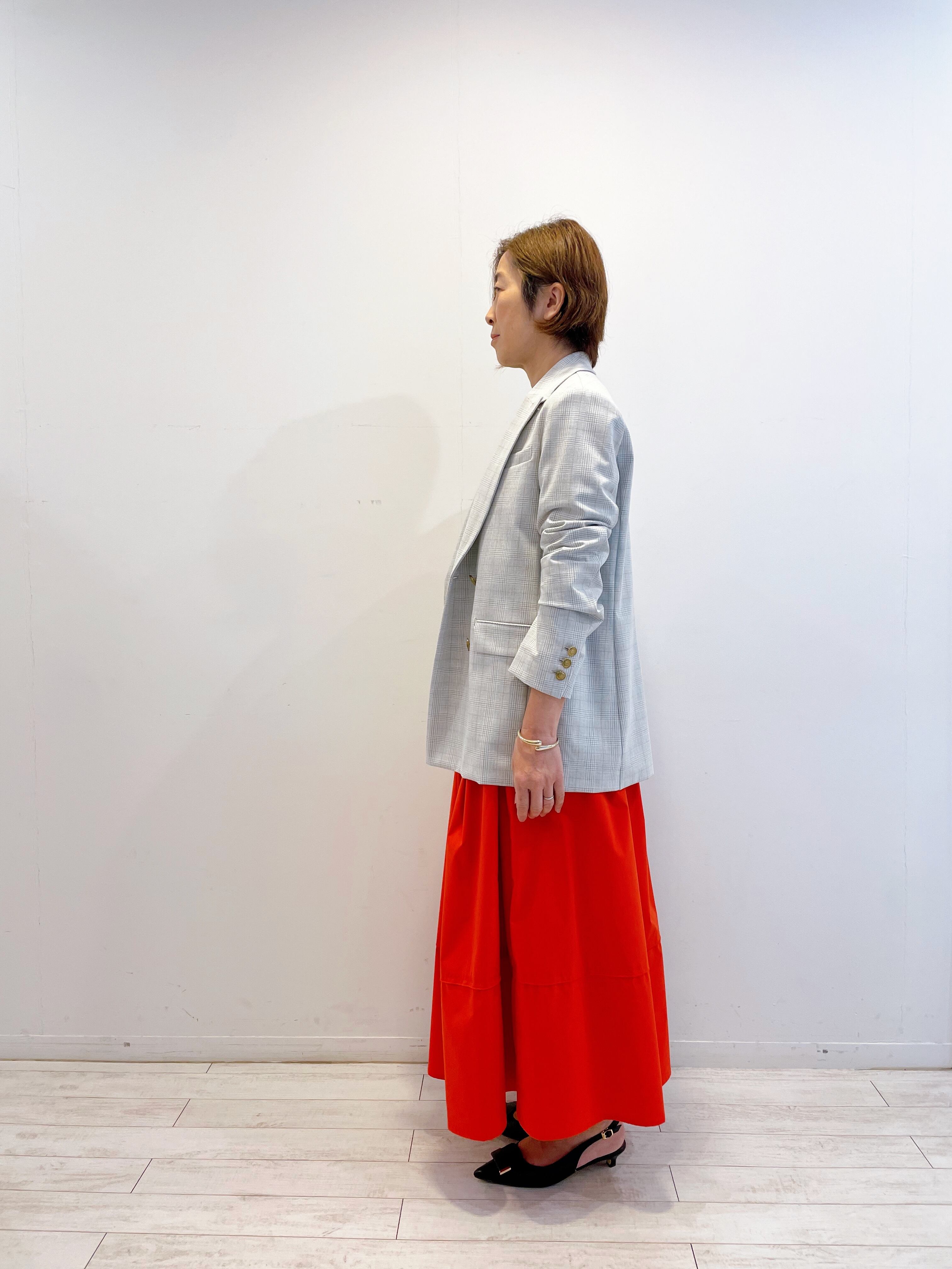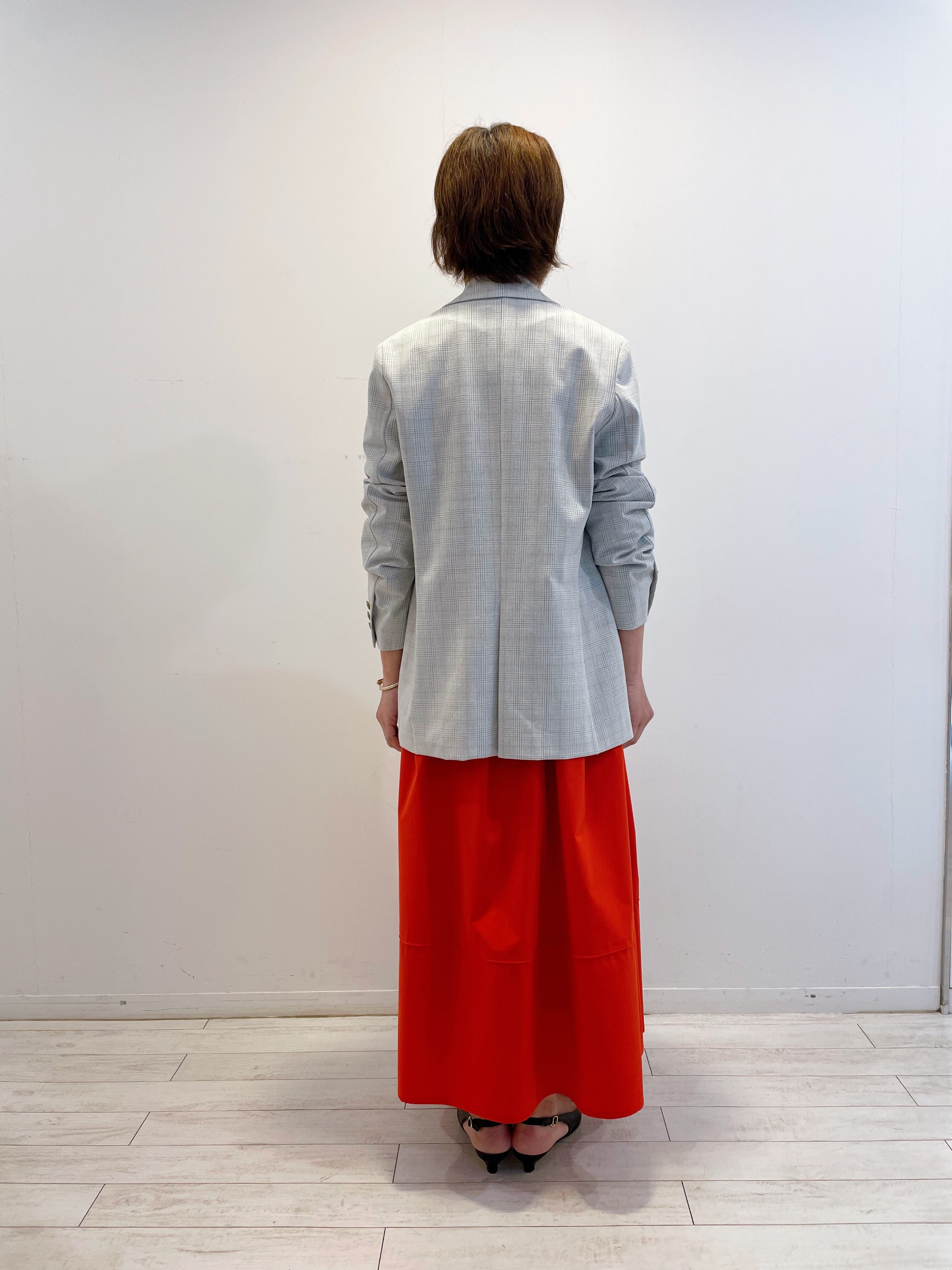 ・ウエストまわりに細かくタックとギャザーを施し、歩くたびに優雅に揺れるシルエットが目を惹くスカート。