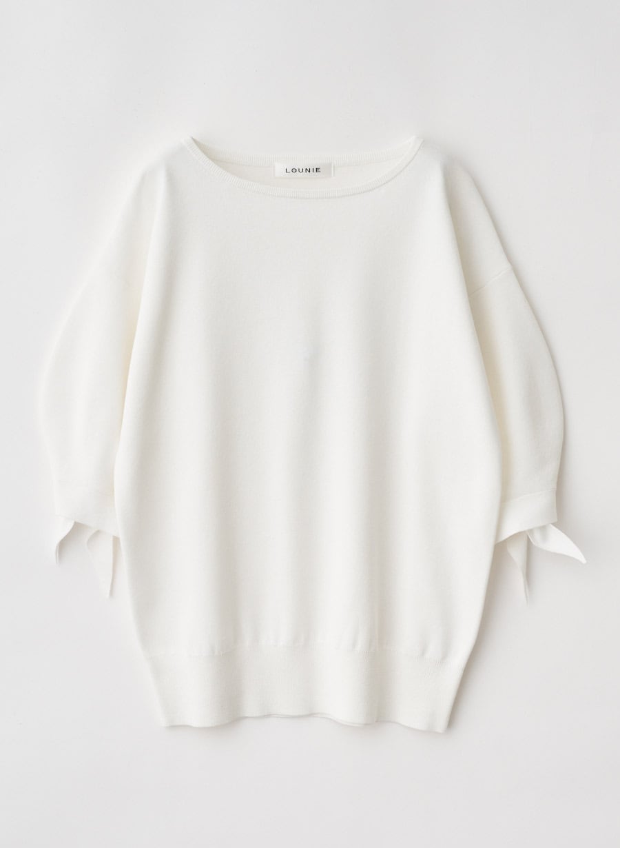 ・シャリ感のある綺麗見えな綿ポリエステル糸を使用し、ハーフミラノリブ編みで構築的なシルエットを表現したミドル丈のニットプルオーバー。