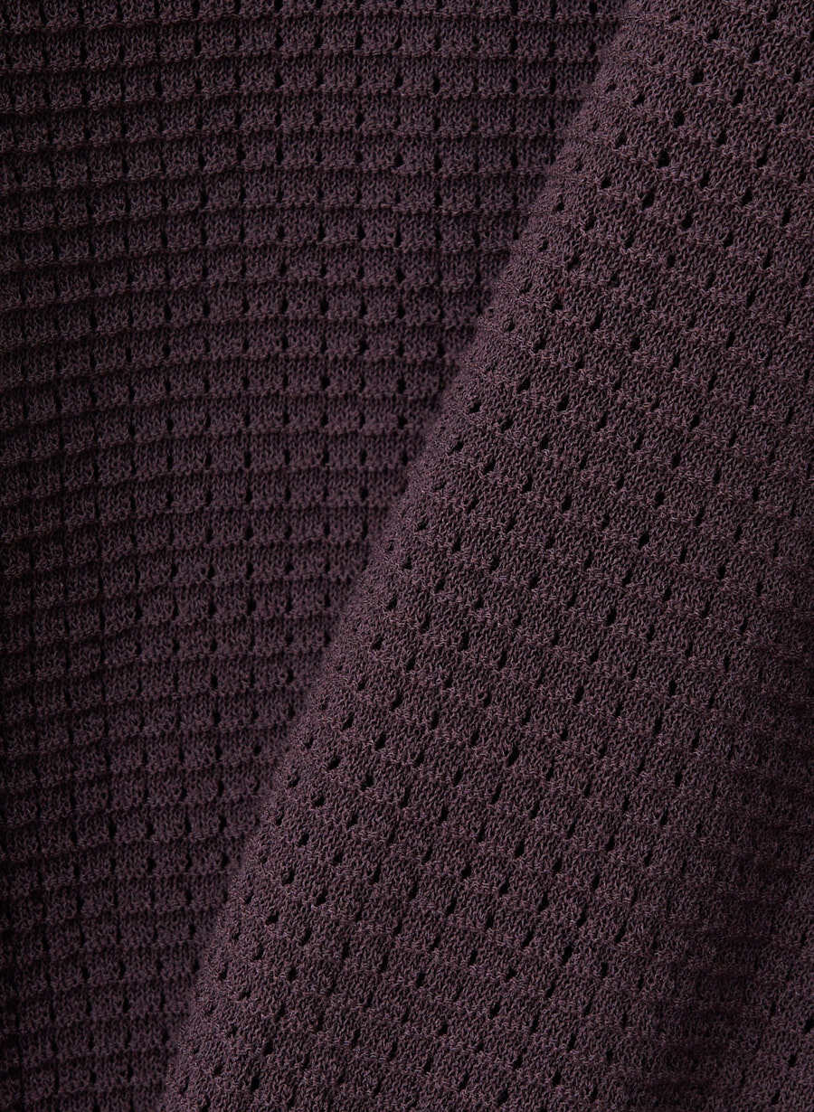 ・涼しげな強撚ドライタッチニットのメッシュ編みジップカーディガンです。