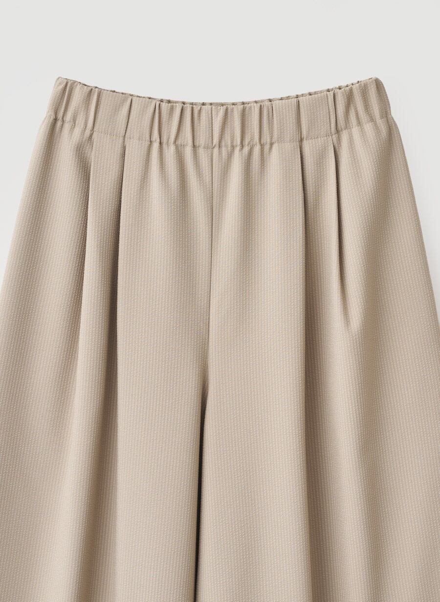 ・軽やかなサッカー素材を使用した、季節感のあるリラックスワイドパンツ。