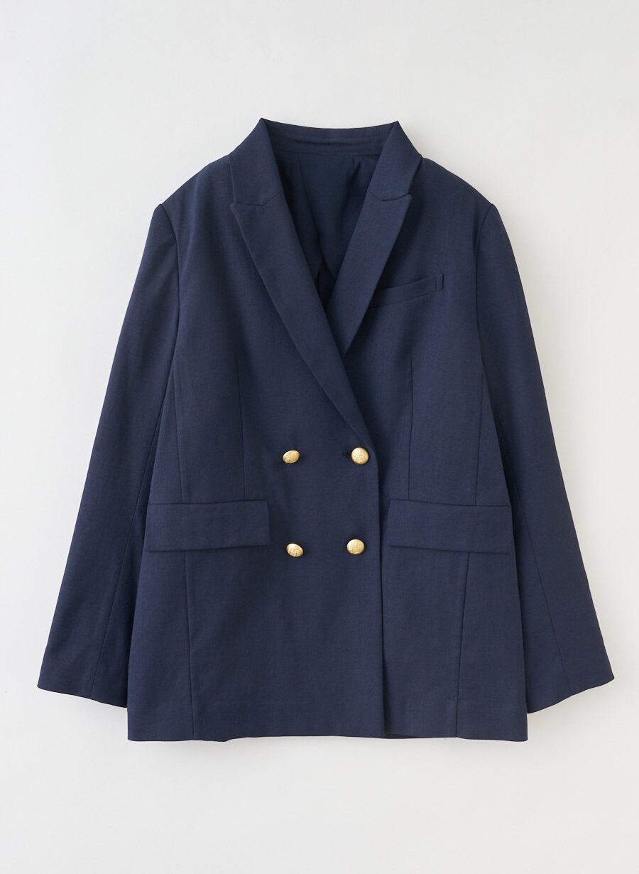・ダブルブレストの端正な表情が、上品で洗練された印象を演出。