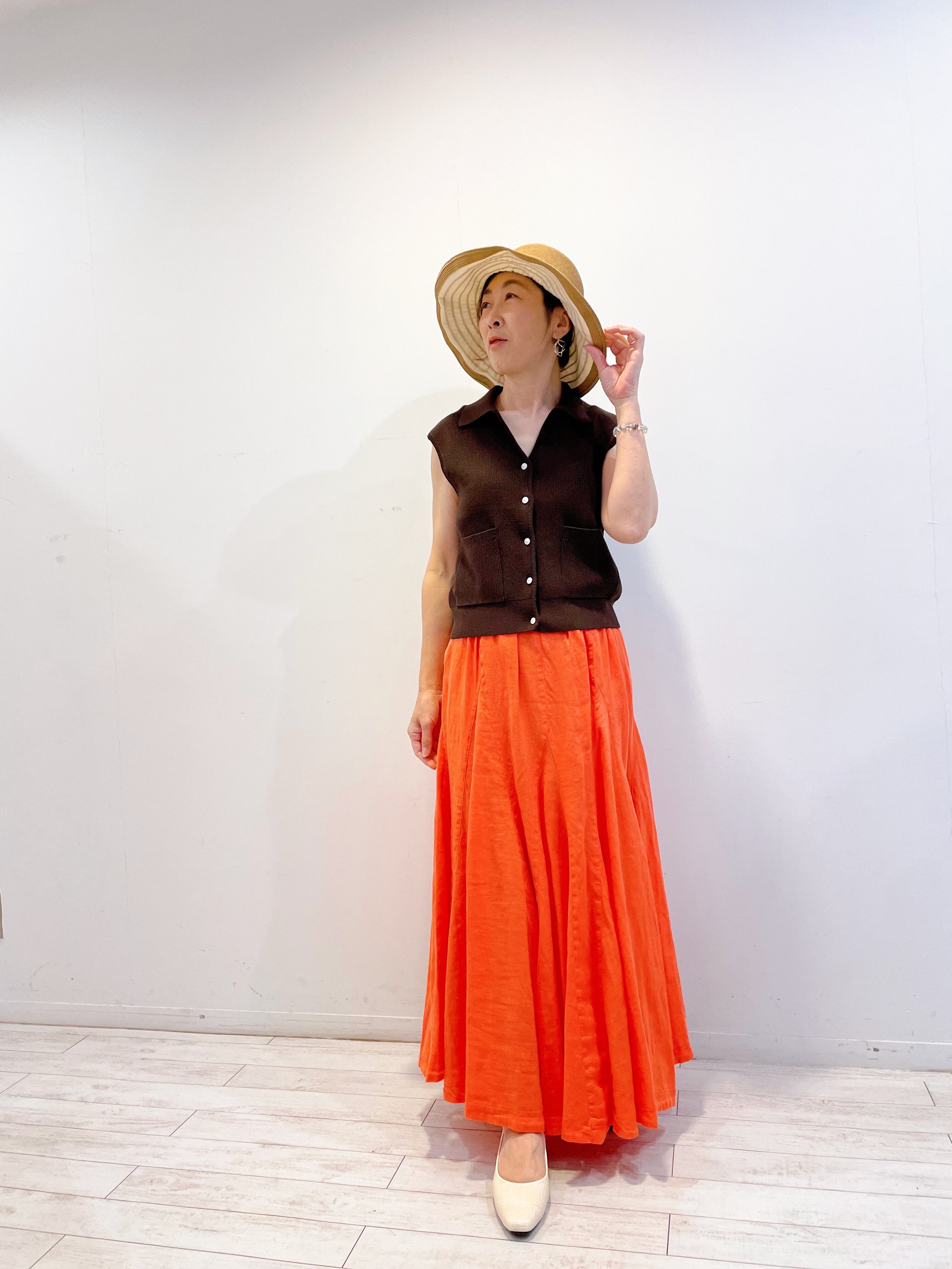 ・シャリ味のカジュアルな片畦編みで抜け感をだしながらも、小さめの衿をプラスすることで綺麗めスタイルにも取り入れられるよう仕上げました。