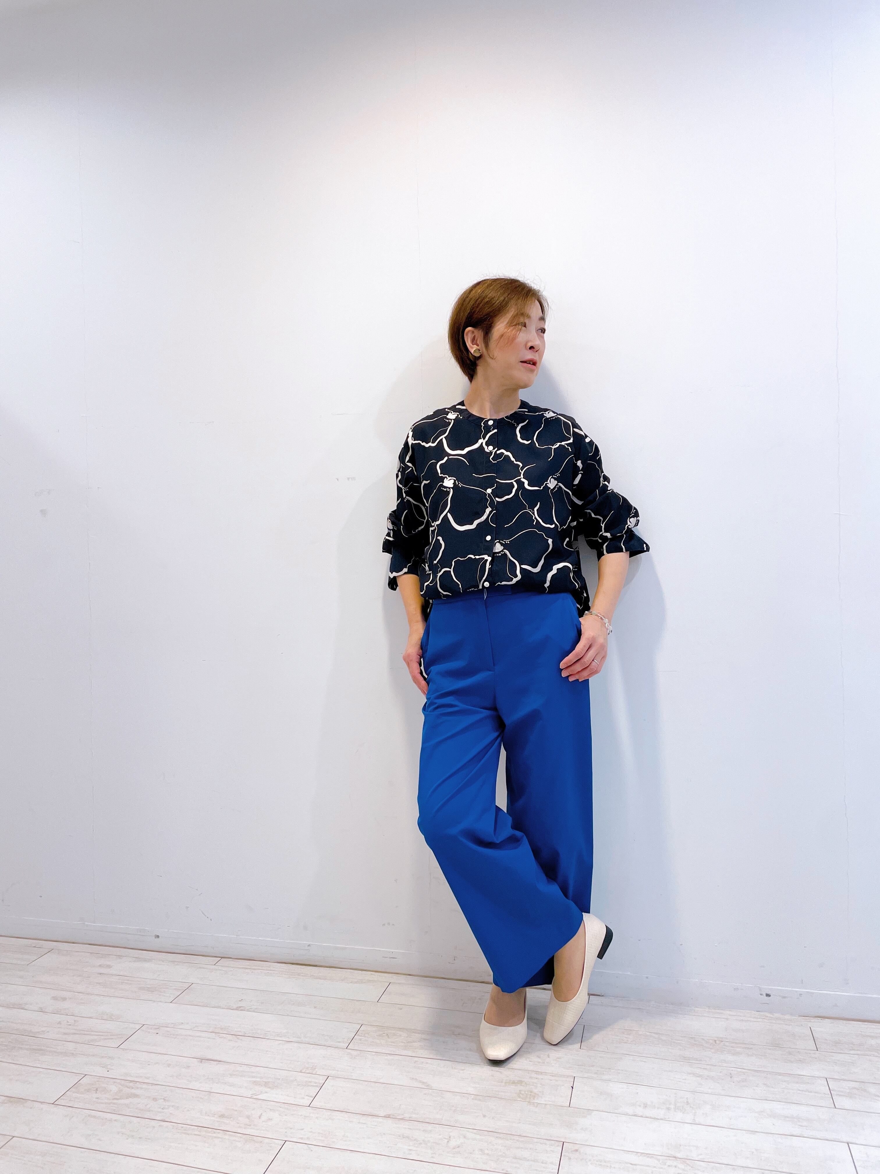 ドローイングタッチの花柄のプリントが印象的なブラウス。